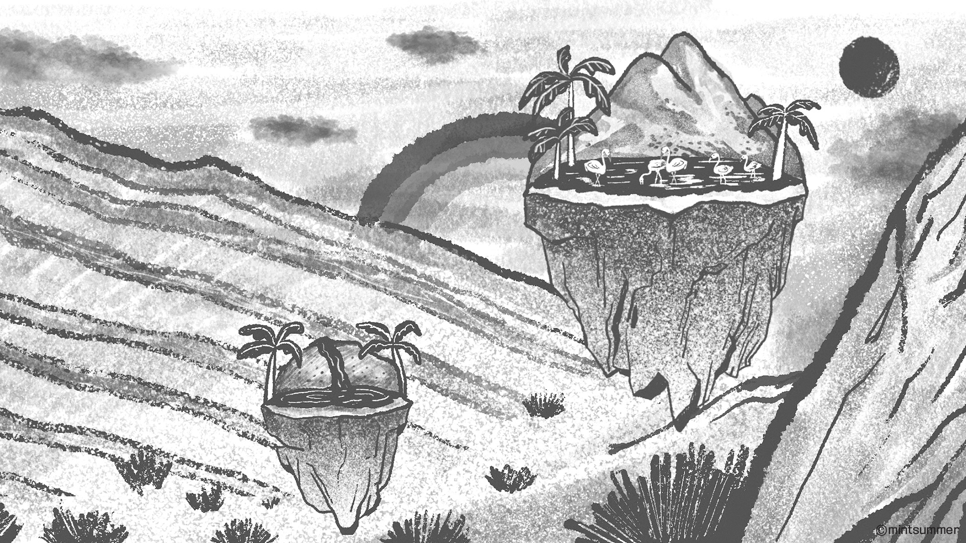 I was commissioned by a client to illustrate a space that was produced as a large media art. It was a concept directed under the theme of 'Nature in a Dream', and I was in charge of illustrating the 'Desert' space.