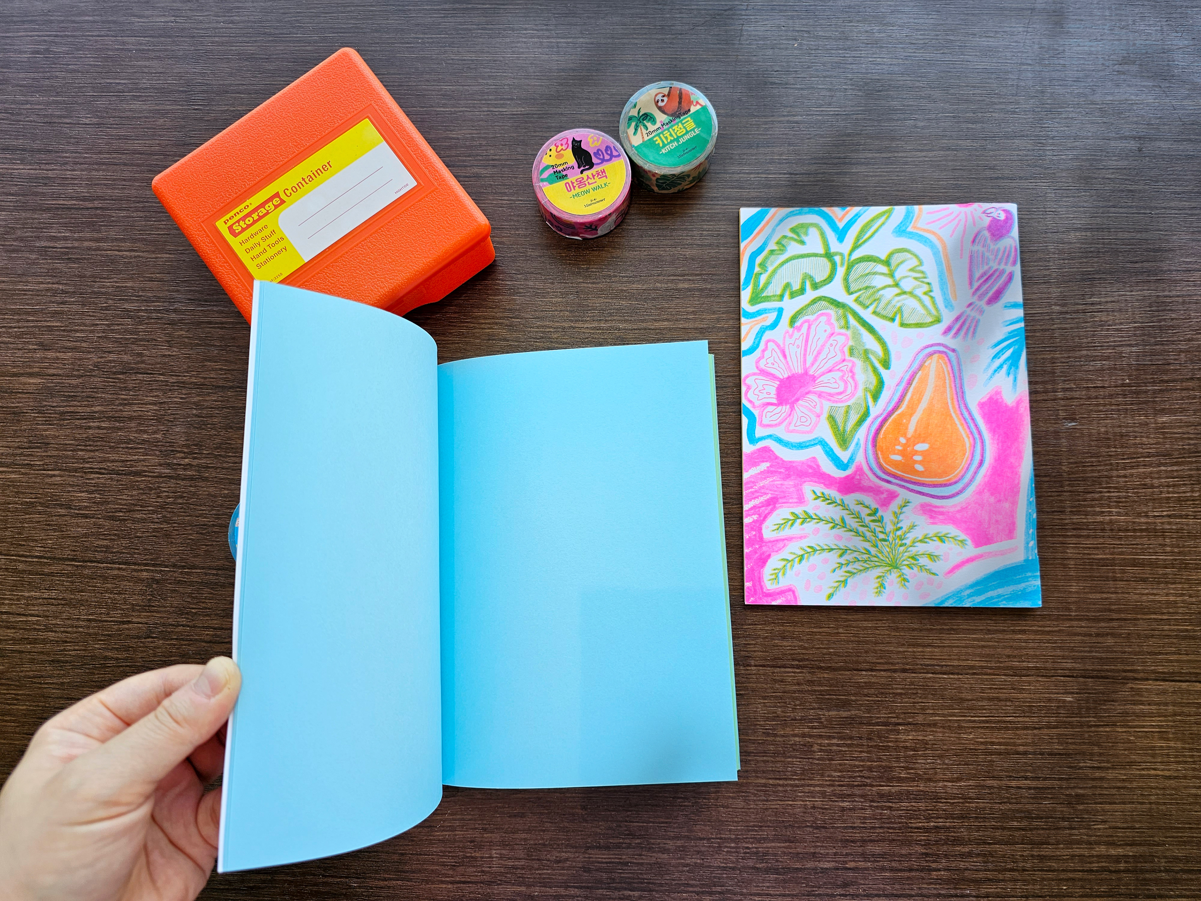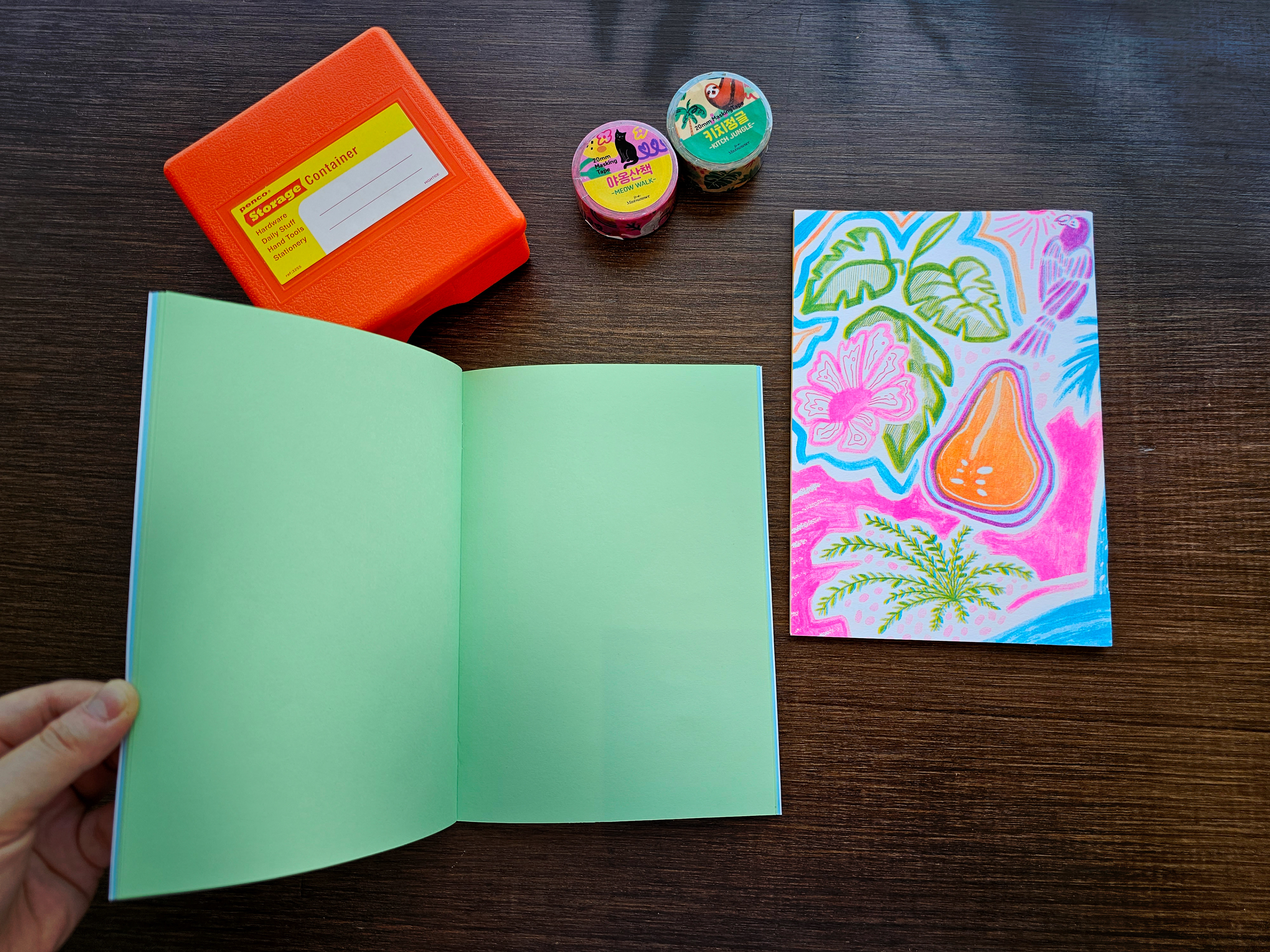 I made a notebook by patterning cats walking in the forest. I did my own double-iron binding.